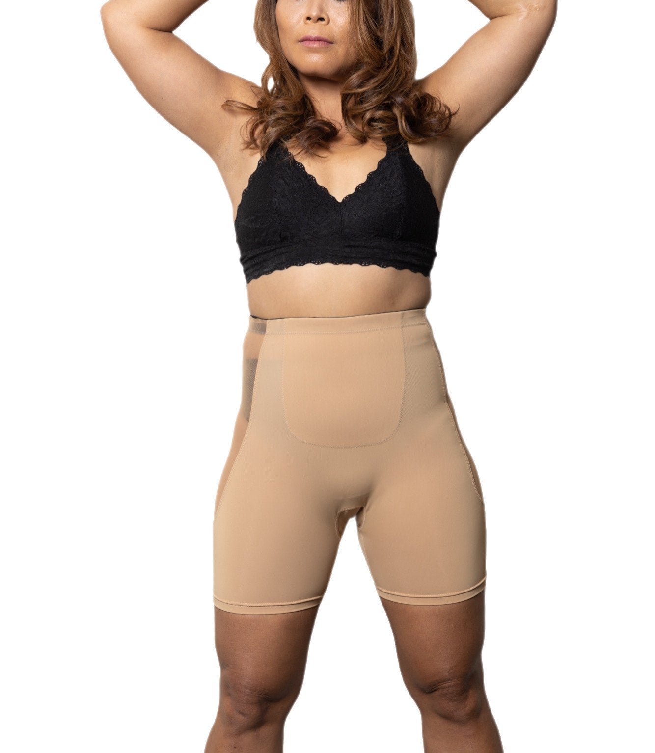 Lux1163 is the ultimate luxury shaper short. The latte color is designed to blend with lighter clothing and can also serve as a nude color for lighter skin. Its patent pending design contours to your body shape and smooths unwanted bulges. It has medium compression on the tummy region and thighs, while allowing hips and your bum to be smoothed but retaining your natural shape. Unlike other major brands, whose shapewear sole purpose is to flatten, Lux1163 is the first shapewear product whose primary focus is to retain and/or enhance your shape, while smoothing and slimming.