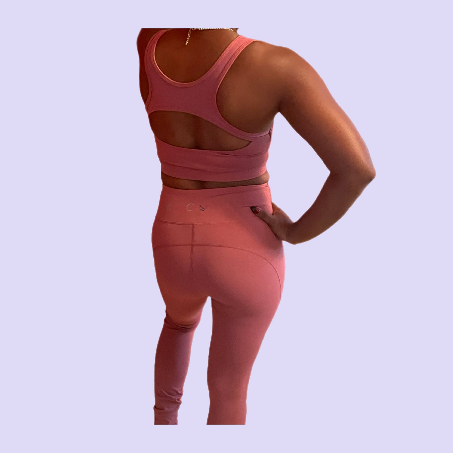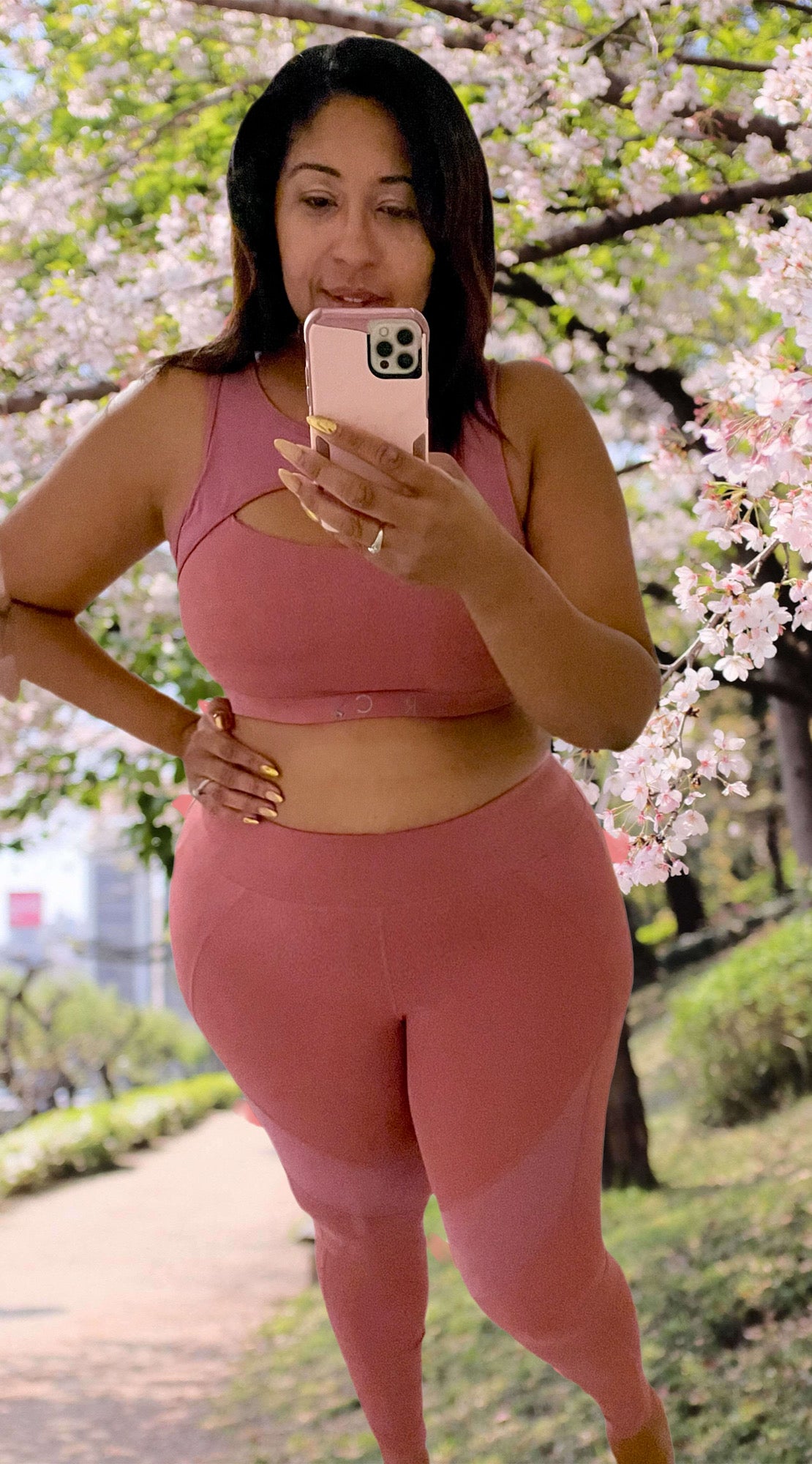 RoseCoveredFIT™ athleisure line provide soft and skin-friendly fabric, four-way stretch sports bra with vest-type straps. The front contains see-through tulle straps to add an element of sexy while you work out. There is an 1.1 inch hemline to prevent rolling edges. with removable chest pads.